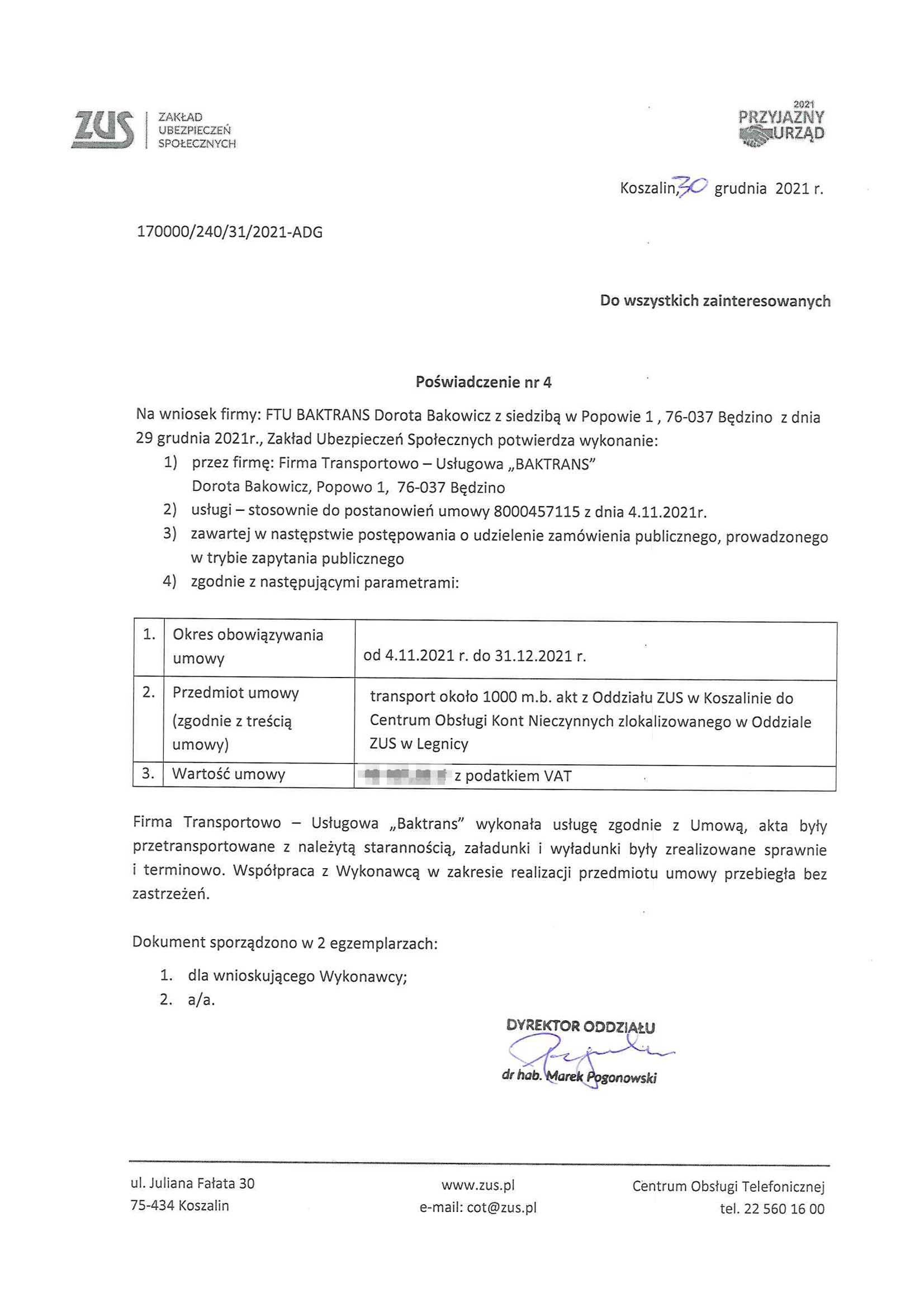 Firma Transportowo Usługowa BAKTRANS