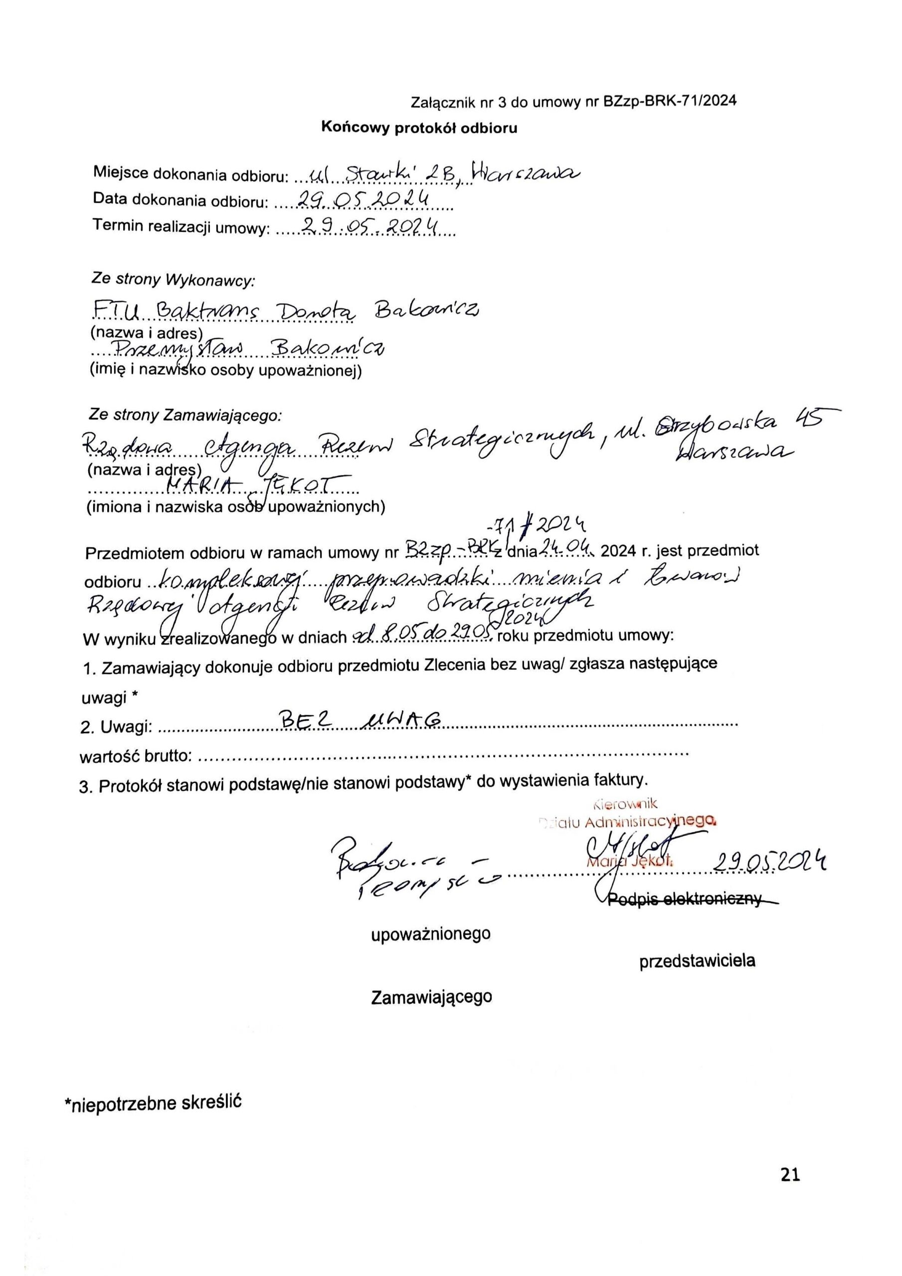 • Przeprowadzki dla podmiotów publicznych